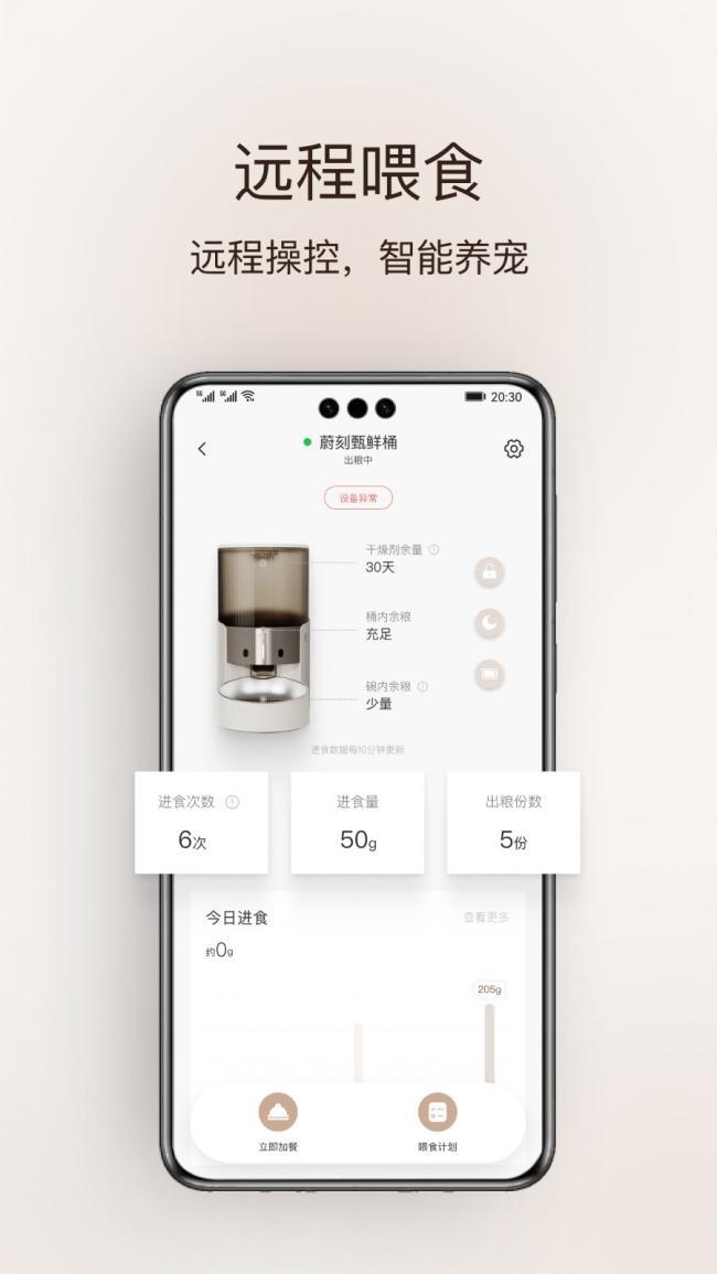 voocoo蔚刻app下载是一款专门为自动宠物喂食器设计的管理软件,可以有效的帮助用户远程管理家里的智能喂食设备,通过它你可以开启远程喂养计划,实时的查看宠物进食状态,并且可以通过手机查看智能喂食器的工作状态,实现了无人自家也可以精准照料好宠物,无论是出差还是旅游都不用担心宠物自己在家会挨饿,让你出门在外也可以安心无忧,而且其中还拥有备用电池装置,发生意外断电的情况就会进行自动供电,不用担心没电而造成的问题,操作方式也是非常的简单,只需要输入设备信息就可以快速进行添加,是所有养宠人士必备的应用。喜欢的伙伴们快来下载试试吧。