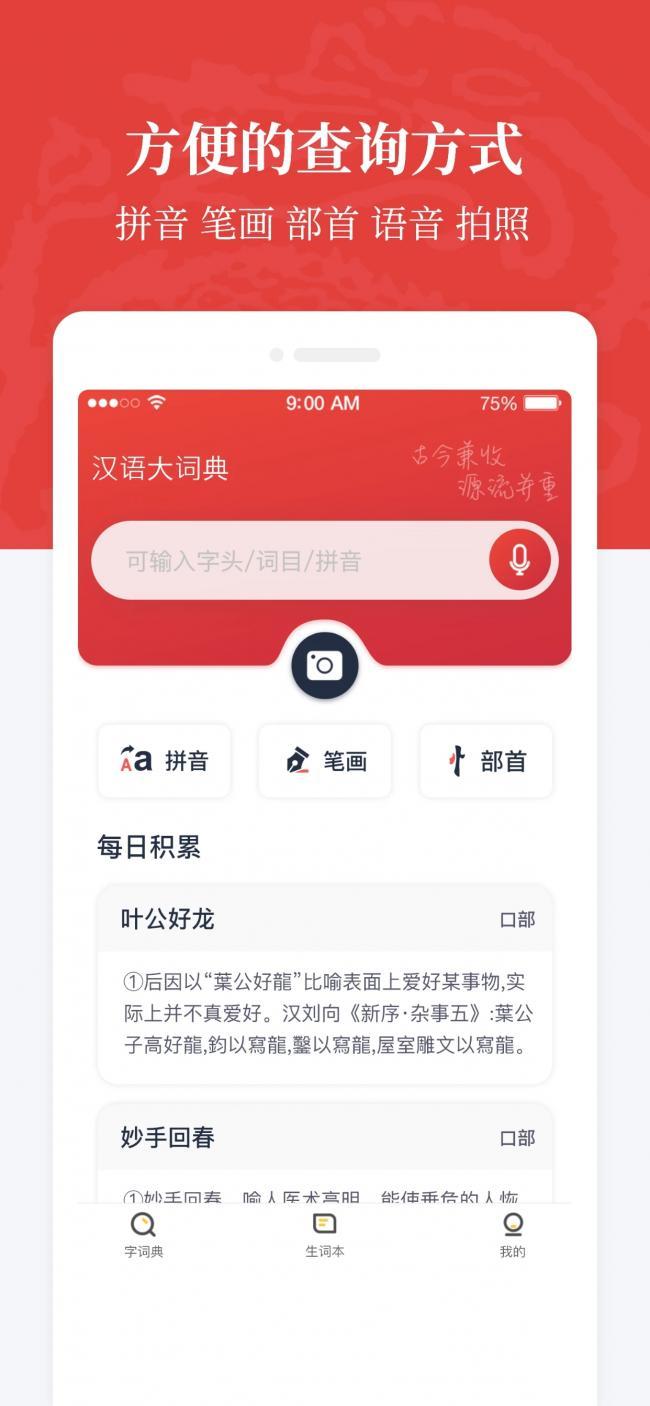 汉语大词典给力版下载是一款功能强大且性能非常稳定的综合性词典学习服务平台,专为广大的汉语学习朋友以及研究者打造而成,汇聚了海量的词汇,涵盖了现代汉语,古代汉语,成语等多个领域,所有的内容都可以在线免费学习,学习的过程没有垃圾广告打扰,绝对的流畅便捷,通过独特的智能搜索引擎,一秒就可以查询到想要学习或者了解的知识,也可以利用拼音,手写,语音等输入方式来查找,所有词汇的含义都有全面的解析,只有你想不到的,没有它提供不了的,独特的离线查询功能,让用户随时随地的都可以学习,完全没有任何困扰,喜欢的伙伴们快来下载试试吧。