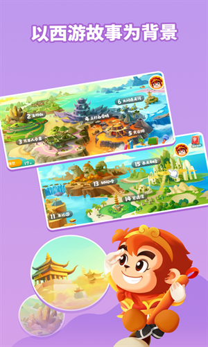 3、沉浸式西游场景:15大主题场景、120+识字游戏、1200个动画,边玩边学。
