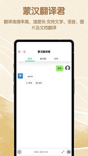蒙汉翻译君app下载是一款功能强大的蒙古语和汉语翻译软件,能够帮助用户轻松的翻译蒙语,这样就可以让你轻松的掌握对应的蒙语翻译内容,为用户带来更加优质的翻译体验,让翻译可以变得更加的轻松且高效,其中还可以为用户提供了许多的翻译模式,你可以通过它进行语音翻译、拍照翻译以及图片翻译等多种翻译方式,让翻译变得更加简单、更轻松,可以满足用户在不同场景下的使用需求,并且其中采用了现在的智能翻译技术,可以让翻译的准确度得到=提升,这样用户就可以轻松和对方进行有效的沟通交流,突破语言的障碍,让语言不再成为我们的屏障。喜欢的伙伴们快来下载试试吧。