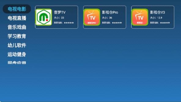 1、近千款电视专属版应用收录于此,电视装机必备!让电视成为家庭娱乐中心的效果发挥到极致。