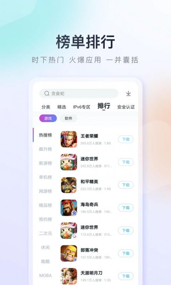 百度手机助手app官方正版下载是一款十分全面的应用下载平台,其中为你提供更加高效、便捷以及安全的下载服务,在这里汇聚了海量丰富的应用资源,无论是游戏、影视、音乐还是小说等多种类型的应用都可以在这里找到,并且还会将所有的应用进行分类整理,让你可以根据不同的类型快速找到自己需要的应用进行下载,还可以通过搜索框,输入关键词快速定位到应用所在位置,非常的方便实用,而且所有的应用都是经过了严格的安全检测,确保了全部都是没有病毒,用户可以放心进行下载使用,还可以支持用户在线管理手机上所有的应用程序。喜欢的伙伴们快来下载试试吧。