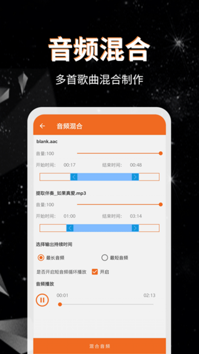 3、可在原有音乐中添加背景音乐,丰富音频层次。