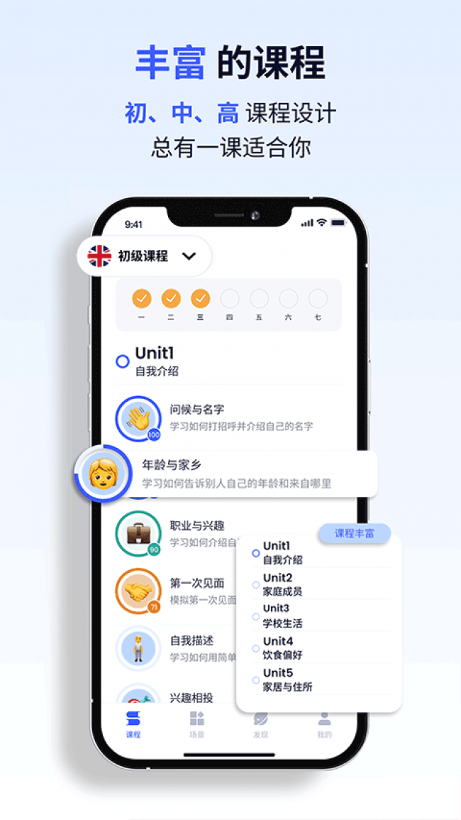 1、提供了各种热门的考试练习场景,可以对各种场景进行口语训练。