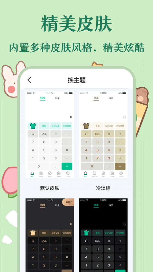 3、支持更换皮肤、控制键盘声音、自定义小数点保留位数,提升使用体验。