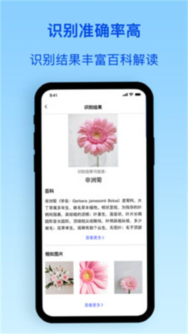 2、用户只需拍一张照片,就能识别出照片中的花卉种类,让植物爱好者们告别有花却不认识花的尴尬。