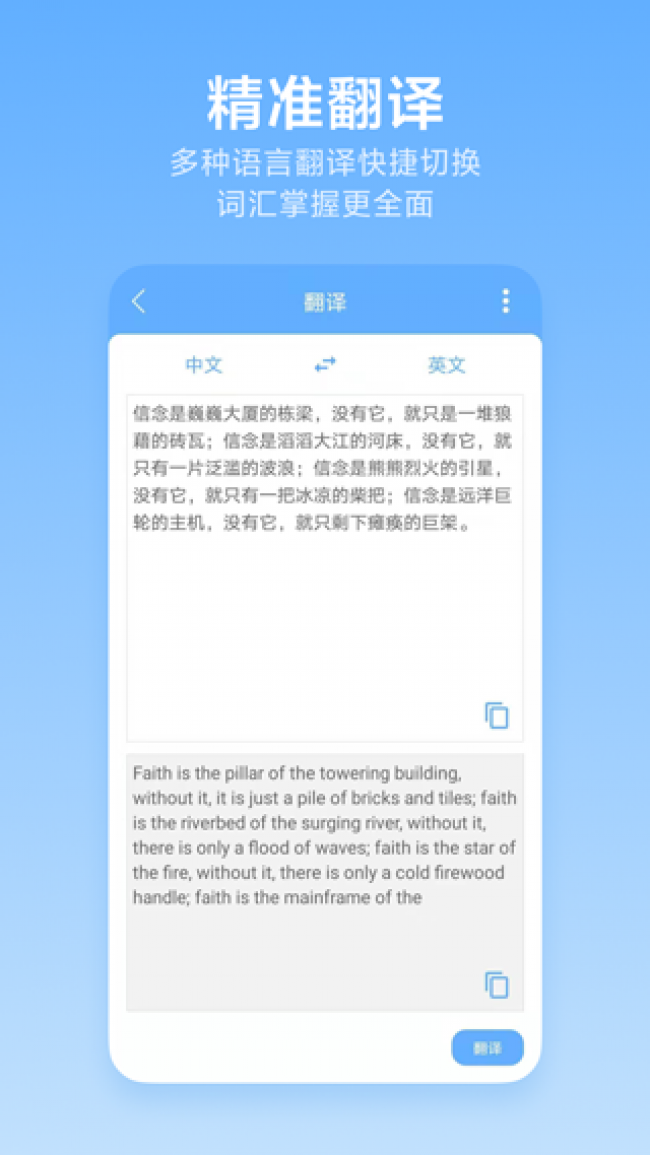 2、支持便捷扫描翻译,扫描的文字便捷翻译,支持多种语音互译。