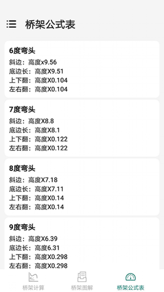 1、桥架弯头计算器app下载包括很多桥梁弯头角度,桥架爬坡计算,拥有很多计算。