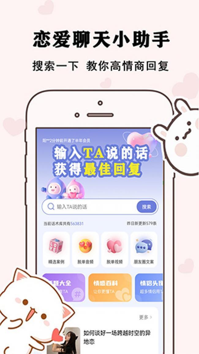 1、草莓恋爱app下载安装上有上万句的聊天话术,可以直接复制,通过愉快的聊天氛围快速拉近彼此距离,。