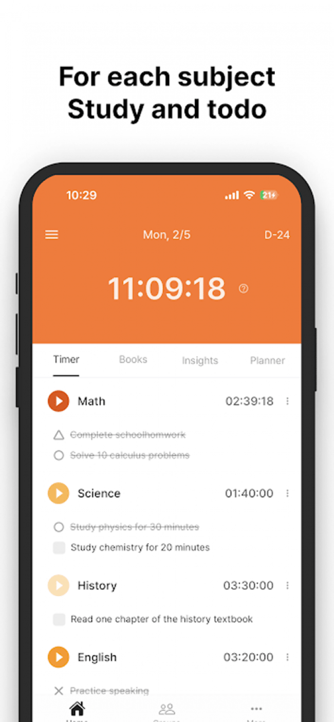 1.按照不同科目分别开启倒计时计时,精准记录单科学习时长,高效把控各科复习节奏。
