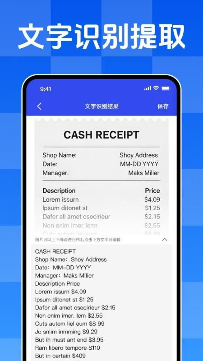 2.高效解析图片里各类文字信息,识别完成后可自由选中、复制粘贴文本内,操作自由灵活。