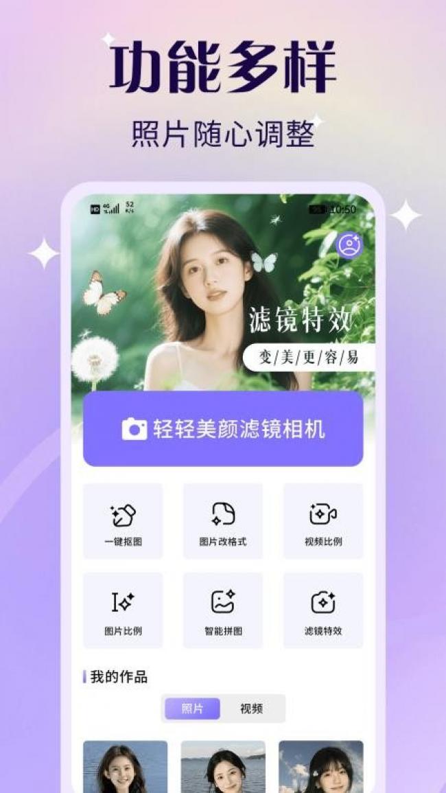 轻轻美颜滤镜相机app是一款很强大的手机美颜相机软件。软件可以针对不同的人脸进行面部状态的优化,皮肤细腻、美白、祛斑祛痘、马赛克等等功能都可以轻松操作,并且也有智能美颜功能可以优化不同光线下的人脸效果,让视觉感受更加舒适。所有美图工具操作便捷,零基础用户也能简单操作,快速完成图片美化,感兴趣的用户一定不要错过哦。