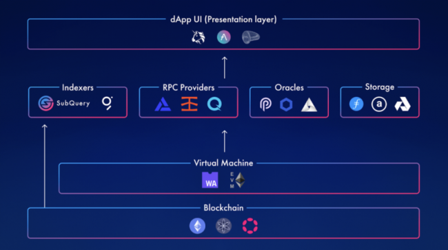 2、在以太坊、 Polkadot 上,有着大量的原始数据。原先要在他们上开发一个 DApp,开发者需要下载网络的完整账本,从整条链的第一个区块开始浏览,按照区块顺序依次查找,访问需要的数据,这个过程相当漫长。