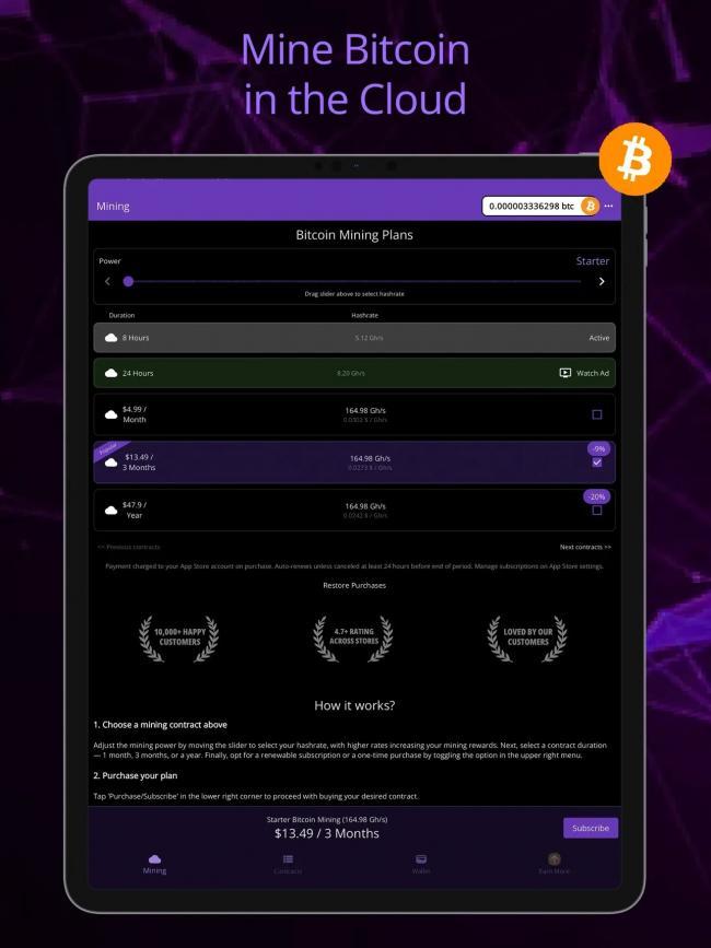 4、移动端App:Google Play或App Store有“Bitcoin Miner”等应用,但功能有限,需仔细甄别。