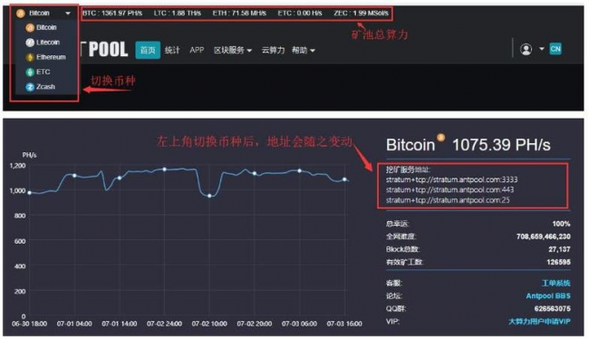 2、Antpool:由Bitmain开发的综合性区块链挖矿软件。
