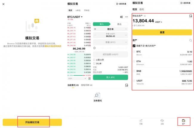 比特币模拟交易让用户可以在不投入真实资金的情况下,利用虚拟环境进行市场操作的实践工具,它可以完整复刻真实交易场景,让用户可以零风险的学习交易流程、验证策略并熟悉平台功能,用户可以在其中模拟真实市场情况进行交易,从而提升自己的交易技巧和经验,这种平台通常提供了实时行情、交易图表等功能,让用户能够更好的了解市场动态,通过模拟交易,用户可以学习交易策略、风险管理等重要知识,让你在进行真实交易的时候更有把握,同时还能保持良好的心态,非常适合新手入门使用,可以让投资者更轻松安全的进行比特币交易,累计自己的投资经验。