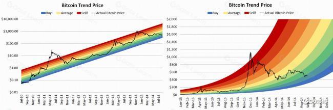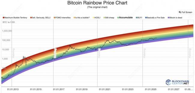 比特币彩虹图是一种用于观察比特币长期价格变化区间的可视化工具,它的核心思路就是将比特币的数据放入对数坐标体系中,通过回归模型制作出一条趣事曲线图,通过将比特币历史价格和时间的关系绘制成不同颜色的图表,帮助投资者更好的判断当前市场处在的情绪周期,比特币彩虹图是由Reddit的一位用户开发,为了显示比特币的价格趋势,后来另一位用户插入了回归模式,让它可以更准确的预测价格走势,经过回归矫正后更吻合历史数据,显示长期观点,对于短期交易的投资者帮助不大,还会不断更新迭代,未来还会继续更新让数据更加精准。